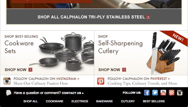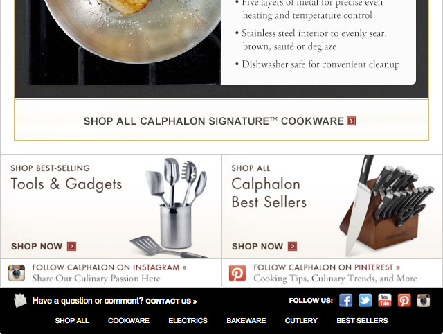 Over the years, we worked closely with the Calphalon team to create engaging and information e-mail marketing messages in line with the Calphalon Mission: "...to be the approachable culinary expert in kitchenware, enhancing the home chefs' food experience during planning, prep, cooking, and baking."