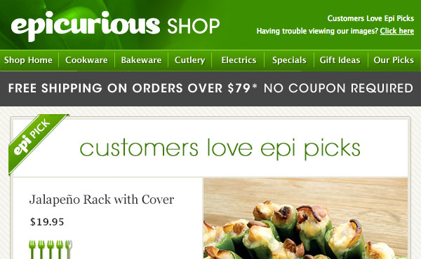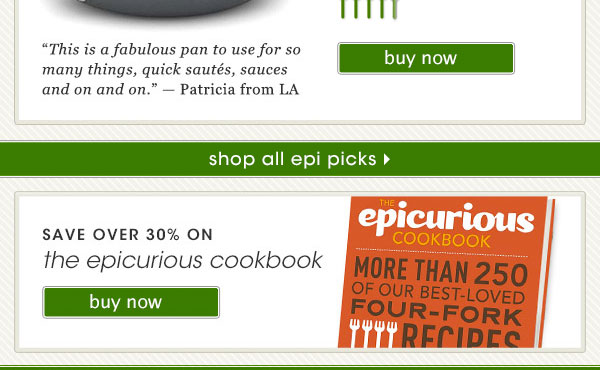 We also provided e-mail marketing services and worked closely with the experts at Epicurious to align the shopping experience with the content of the parent site. We integrated into the platform, expert tips called “Epi Picks” &emdash; favorite, “go-to” products selected by the experts at Epicurious.