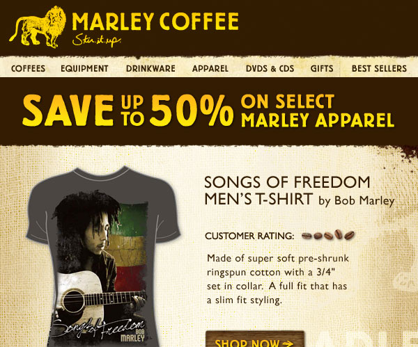 Bob Marley always said he would return to farming one day. With Marley Coffee, Bob's son Rohan fulfills the dream. Marley Coffee is an international gourmet coffee company founded by Rohan Marley and his friend Shane Whittle, sourcing beans from around the world, including Ethiopia, Central America and Jamaica. From the Marley's Jamaica Blue Mountain coffee farm, to partner farms in Africa, Central America and other top coffee-growing regions worldwide, Marley Coffee strives to support communities and the environment through organic, sustainable and ethical practices.