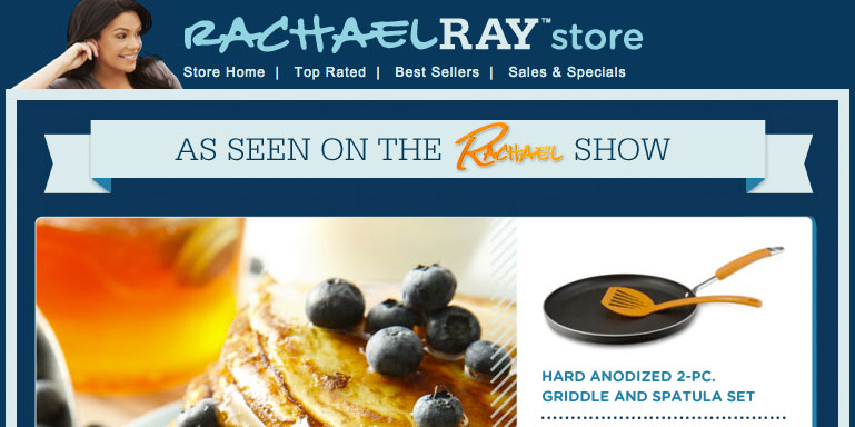 From her TV shows and magazine to her cookbooks, pet food and not-for-profit organization Yum-o! that empowers kids and their families to develop healthy relationships with food and cooking, Rachael Ray has become a household name in today's home kitchen. In 2009, Rachael Ray joined forces with Cooking.com to launch an online store on the Powered-by platform featuring Rachael Ray cookbooks, cookware, cutlery and her many uniquely "Rach" products that find simple solutions to everyday problems.