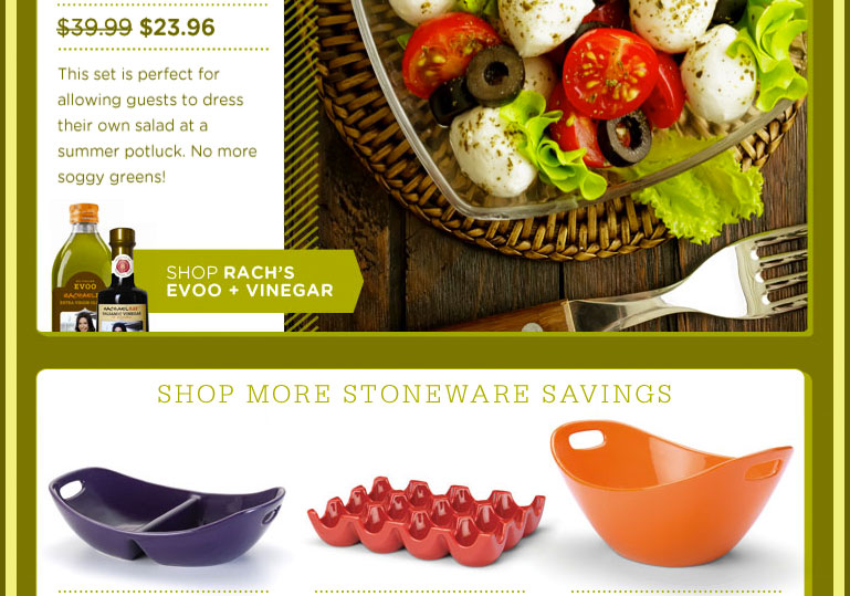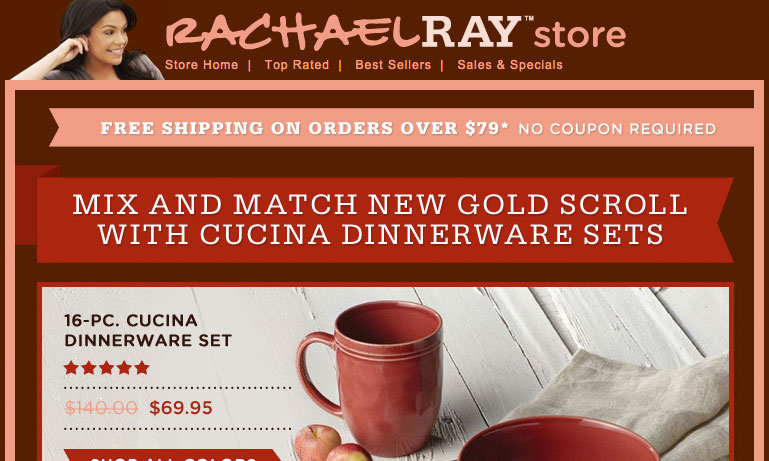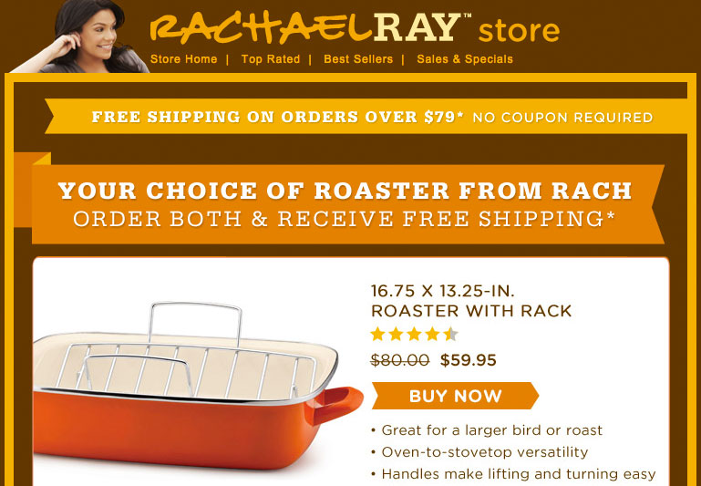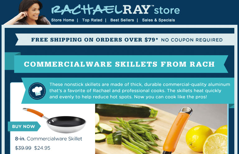 From her TV shows and magazine to her cookbooks, pet food and not-for-profit organization Yum-o! that empowers kids and their families to develop healthy relationships with food and cooking, Rachael Ray has become a household name in today's home kitchen. In 2009, Rachael Ray joined forces with Cooking.com to launch an online store on the Powered-by platform featuring Rachael Ray cookbooks, cookware, cutlery and her many uniquely "Rach" products that find simple solutions to everyday problems.